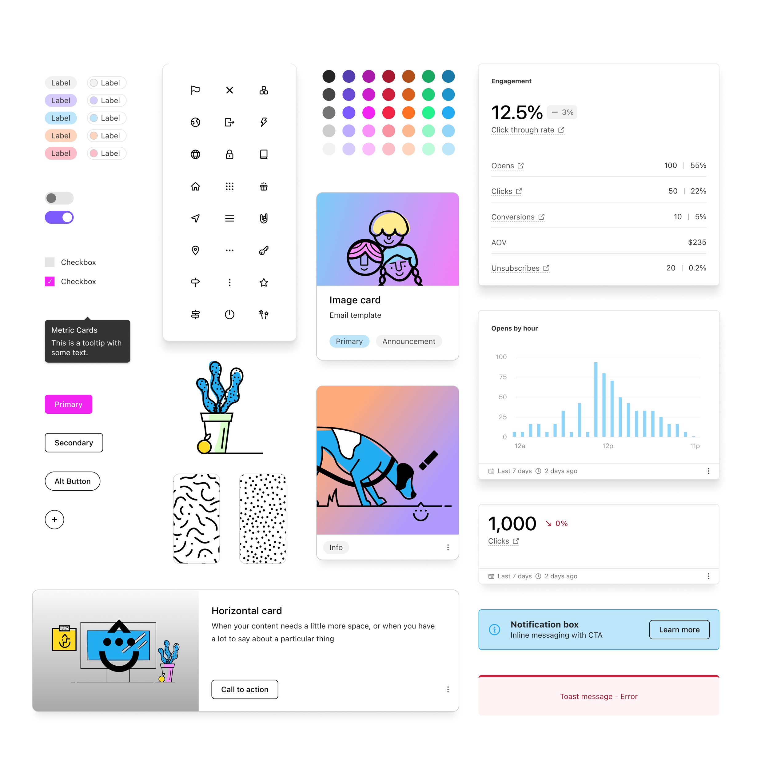 A preview of the look, feel, design system, and components that define the Drip brand, and my contributions to it.